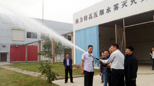 在许总的陪同下,段罗顺等农林专家一行首先参观了海力特生产基地,观看了高压细水雾根灌演示、细水雾雾景系统、多功能喷雾车及高压细水雾灭火实验等,并对海力特产品进行了亲自操作。同时,公司技术人员也与农林专家们做了充分的交流,学习了农林方面的知识,为高压细水雾在农林领域的拓展打下基础。