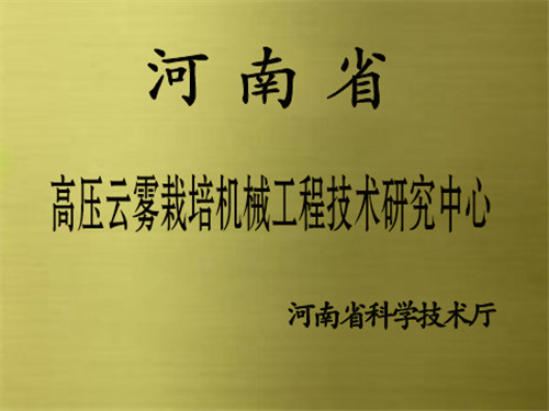 2016年河南省科技厅批准成立“河南省高压云雾栽培机械工程技术中心”;同年被列入《2016年第一批河南省首台(套)重大技术装备认定产品名单》目录。